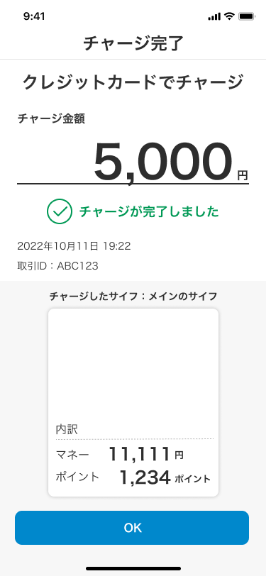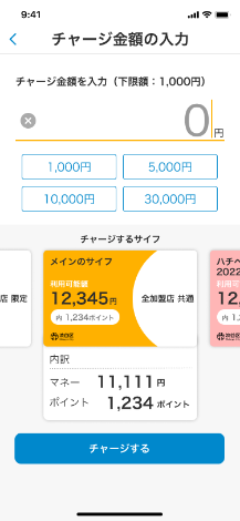 チャージ金額の入力画面でチャージ金額を入力、もしくはチャージしたい金額のボタンをクリックします。